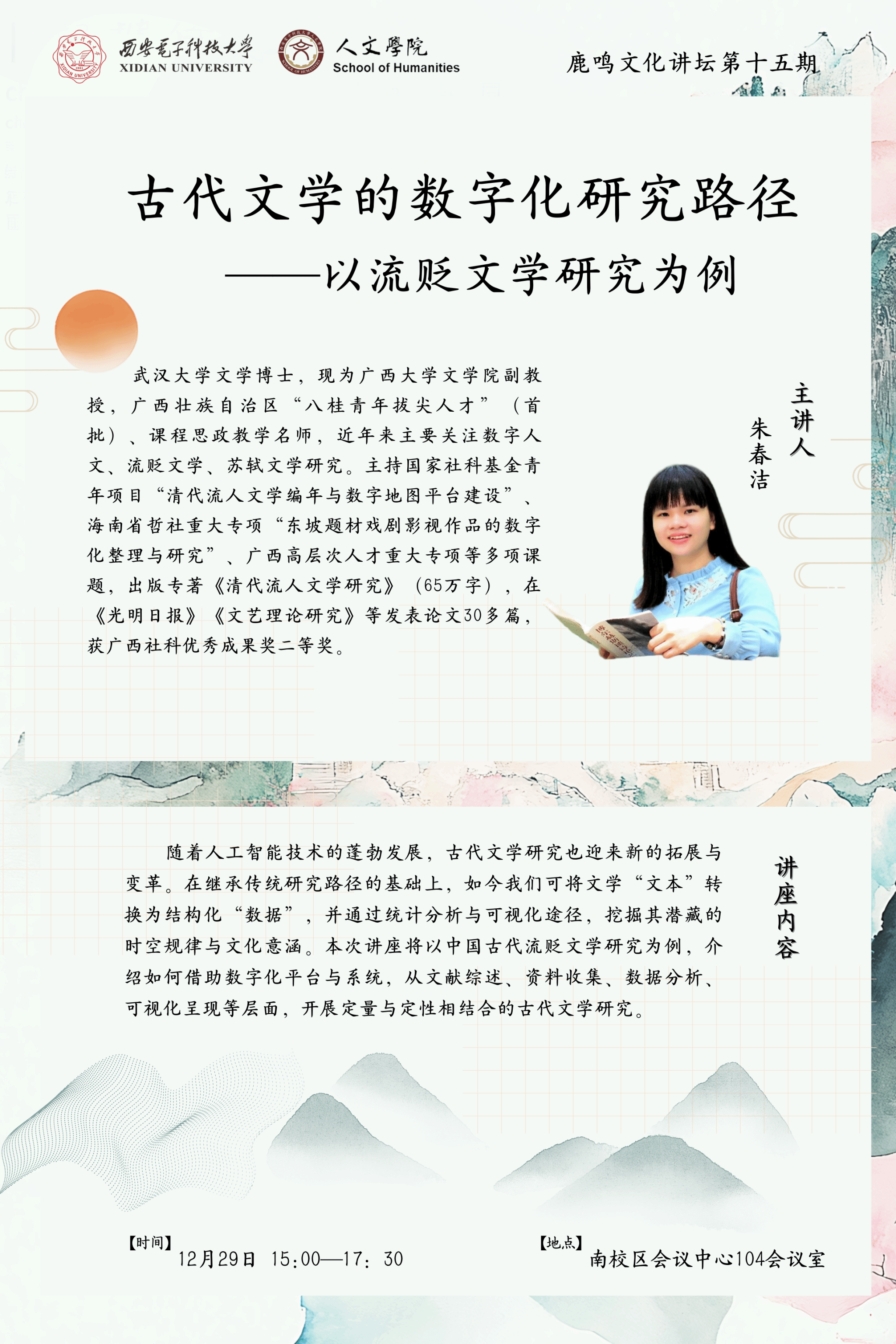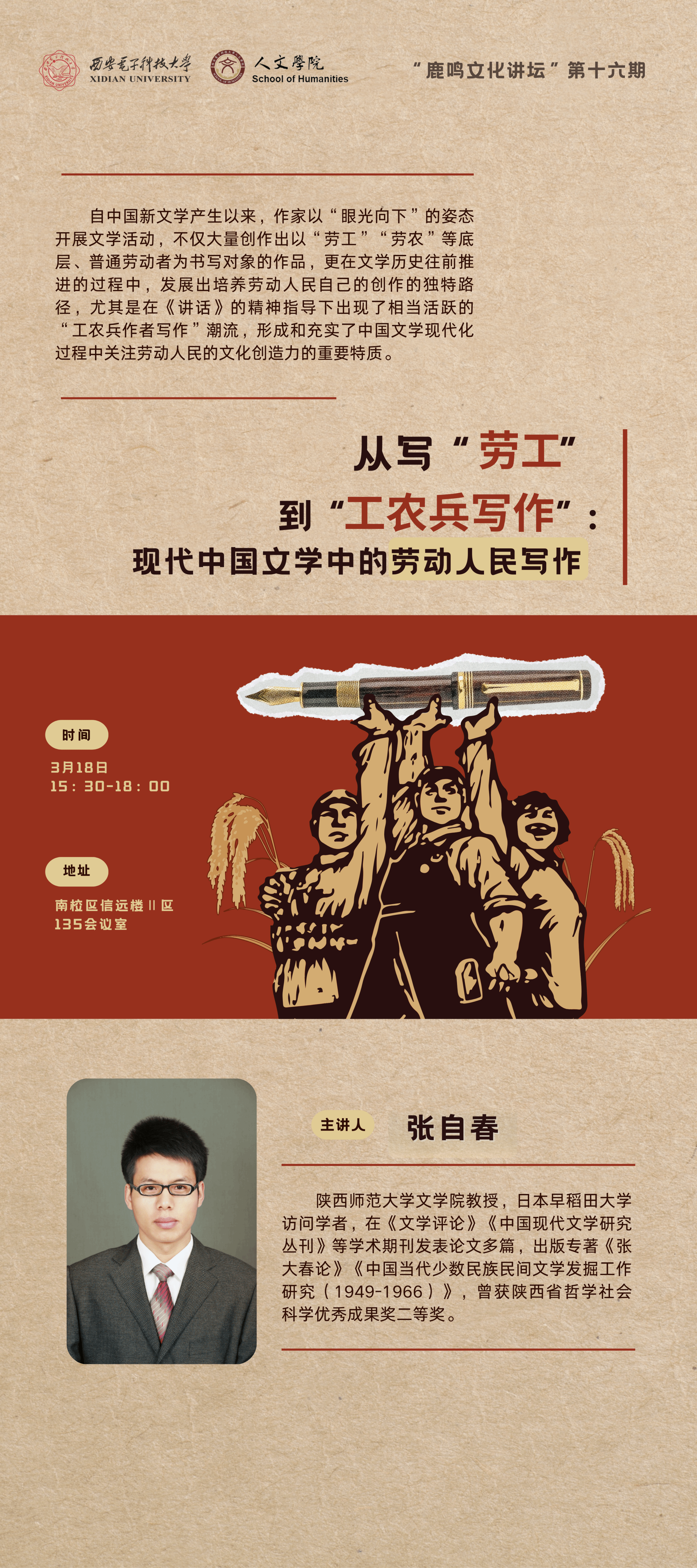 一、 学院简介永利yl23411永利yl23411现有哲学、中文、艺术、历史4个系,哲学、汉语言文学、录音艺术3个本科专业,其中哲学为陕西省一流本科专业。设有哲学一级学科硕士点,在马克思主义哲学、中国哲学、外国哲学、科学技术哲学、美学5个方向招生。学院现有专任教师56人,其中外籍教师2人。学院现有1个国家级基地——国家大学生文化素质教育基地,2个省级基地——陕西智慧社会发展战略研究中心和陕西省中华经典诵写讲基地,...