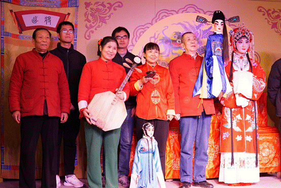 同学们先在工作人员的引导下,了解了永兴坊的历史,并在参观永兴坊的同时品尝了各类地道陕西美食。随后则来到西安说唱艺术团——松声瓦舍,观看了古彩戏法、陕西曲艺眉户及陕派相声与松声瓦舍独创的融合多种非遗技艺的互动式情景剧。随后大家则移步到尚友大秦腔表演馆,观赏了以秦腔为主题并融入各种非遗元素的演出。演出以提线木偶表演《寒窑》选段开场,之后则由秦腔男旦演员曹佳为大家演唱了《飘彩》选段,接着还有杖头木偶戏《周仁回府》、关中皮影戏碗碗腔《卖杂货》、华阴老腔《白鹿原序曲》《华阴老腔一声吼》等精彩的表演。这些传统技艺都是陕西地区的瑰宝,已经被列入国家级非物质文化遗产名录。在专业人士的指导下,师生们尝试了表演皮影戏,学唱了华阴老腔,还穿上戏服带上凤冠,在观看与亲身体验中,充分感受到这些古老技艺的魅力和美学价值。除了现场体验,活动还邀请了多位非遗传承人进行现场演示和讲解,让师生们更深入地了解到这些技艺的历史背景和演进过程,在轻松愉快的氛围中增长了知识。
