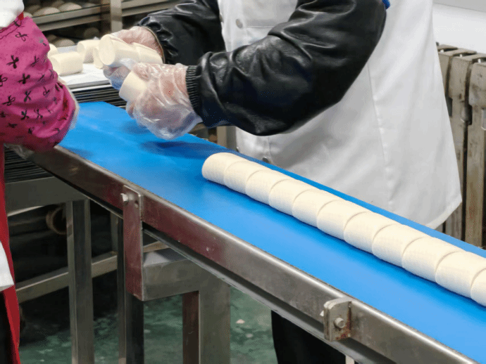 师生一行还前往中心厨房参观。作为全校主食的“心脏”,中心厨房配备了全自动和面机、智能化蒸煮线等现代化设备。同学们亲眼见证了从和面、发酵到蒸制成型的一整套馒头生产线,整洁高效的操作流程令人赞叹。刚刚蒸好的米饭香气扑鼻,随后被分装运往南北校区各食堂,保证了师生每餐都能享用到新鲜、温热的主食。