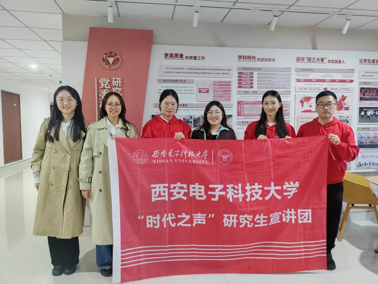 我校“时代之声”研究生宣讲团深度融合学校深厚的红色基因与电子信息领域的特色优势,围绕宣讲团的建设历程与创新实践开展系统宣讲。宣讲团自觉传承红色血脉,紧扣新时代青年认知规律,创新运用人工智能、数字媒体等技术赋能理论武装,成功打造“诗歌里的二十四节气”“关中十二景”等AI+思政项目与“共产党人精神谱系”系列视频,实现了政治性、思想性与科技感、吸引力的有机统一。通过扎实的内容创新与广泛的宣讲交流,宣讲团有效拓展了理论传播的广度与深度,生动展现了西电人“厚德、求真、砺学、笃行”的精神风貌与为国育才的使命担当。