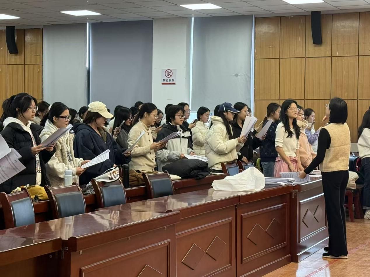 荣誉的背后,是长达一个月的辛勤耕耘与不懈坚持。面对繁重的学业压力,合唱团成员们合理规划时间,利用课余间隙反复打磨,将每一次排练视为淬炼。集体合练中,他们追求声部间的完美融合,注重情感表达的层层递进;指挥吕杨老师倾注心血,耐心指导,既强调整体和谐,又雕琢细节层次。从初期的生涩到舞台上的默契,他们用汗水浇灌梦想,以团结凝聚力量,终在聚光灯下绽放夺目光彩。