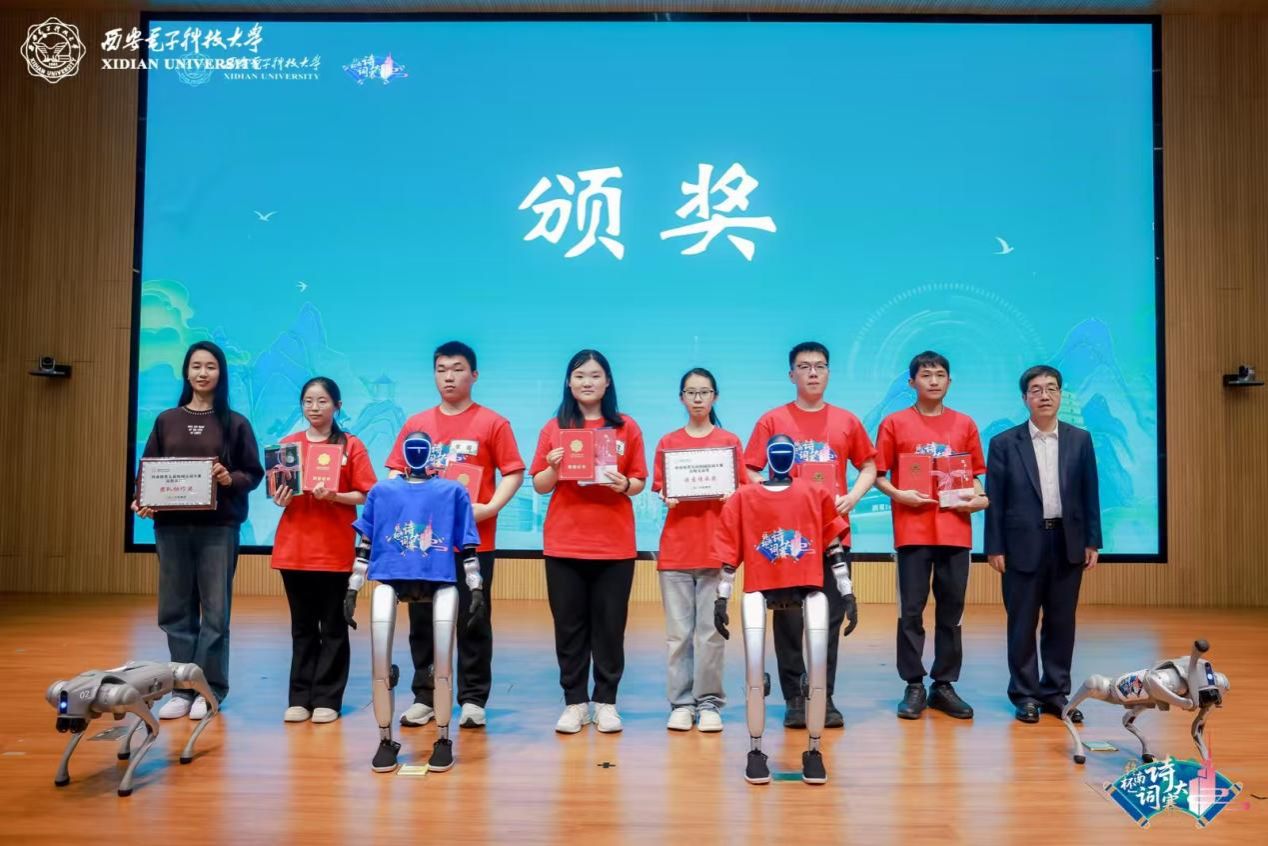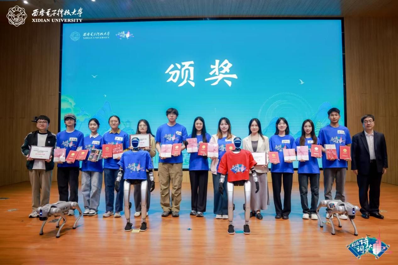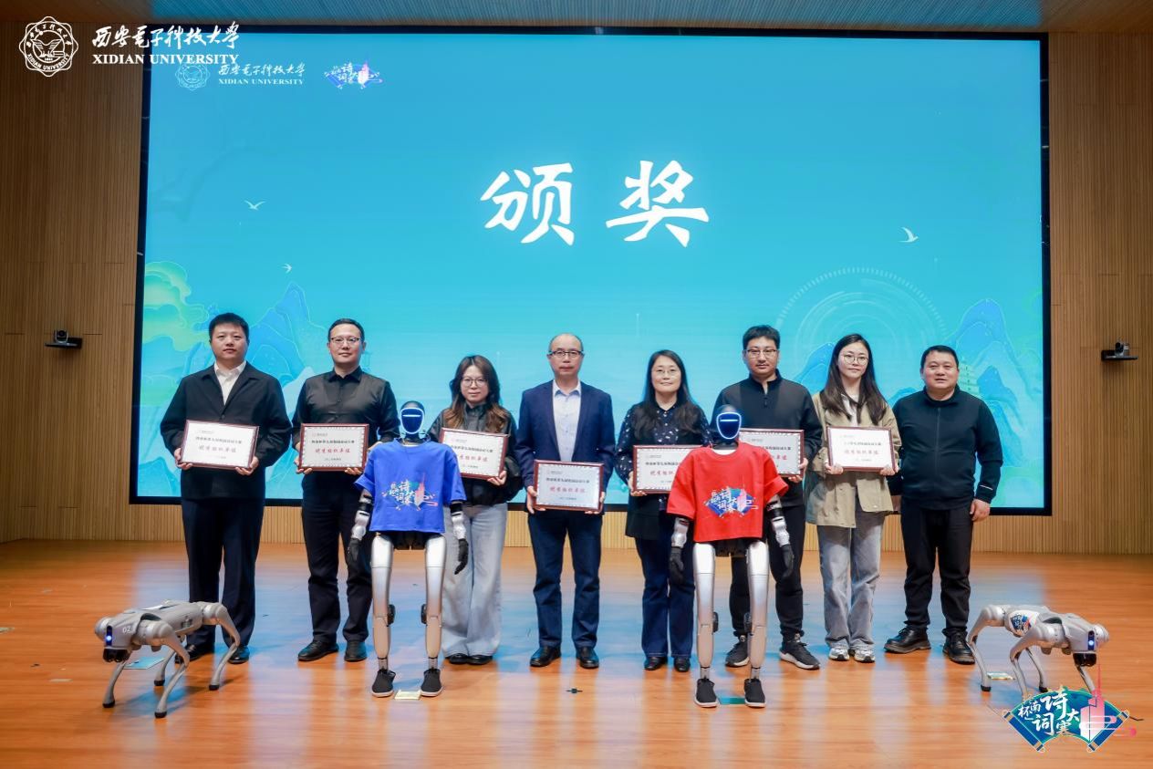本届大赛成功实现科技与文化的跨界交融,打造出一场兼具沉浸感与趣味性的诗词盛宴。智能机器人“终南”“采薇”首次惊艳亮相。“终南”以开场主持身份从容控场,串联流程、点亮开篇;“采薇”则与人文学子联袂献演乐舞《定风波》,让古典神韵在科技赋能下焕发新生。赛间,两位机器人还与选手及观众展开多轮妙趣横生的诗词互动,成为调节赛程节奏、引爆全场热情的鲜活纽带。