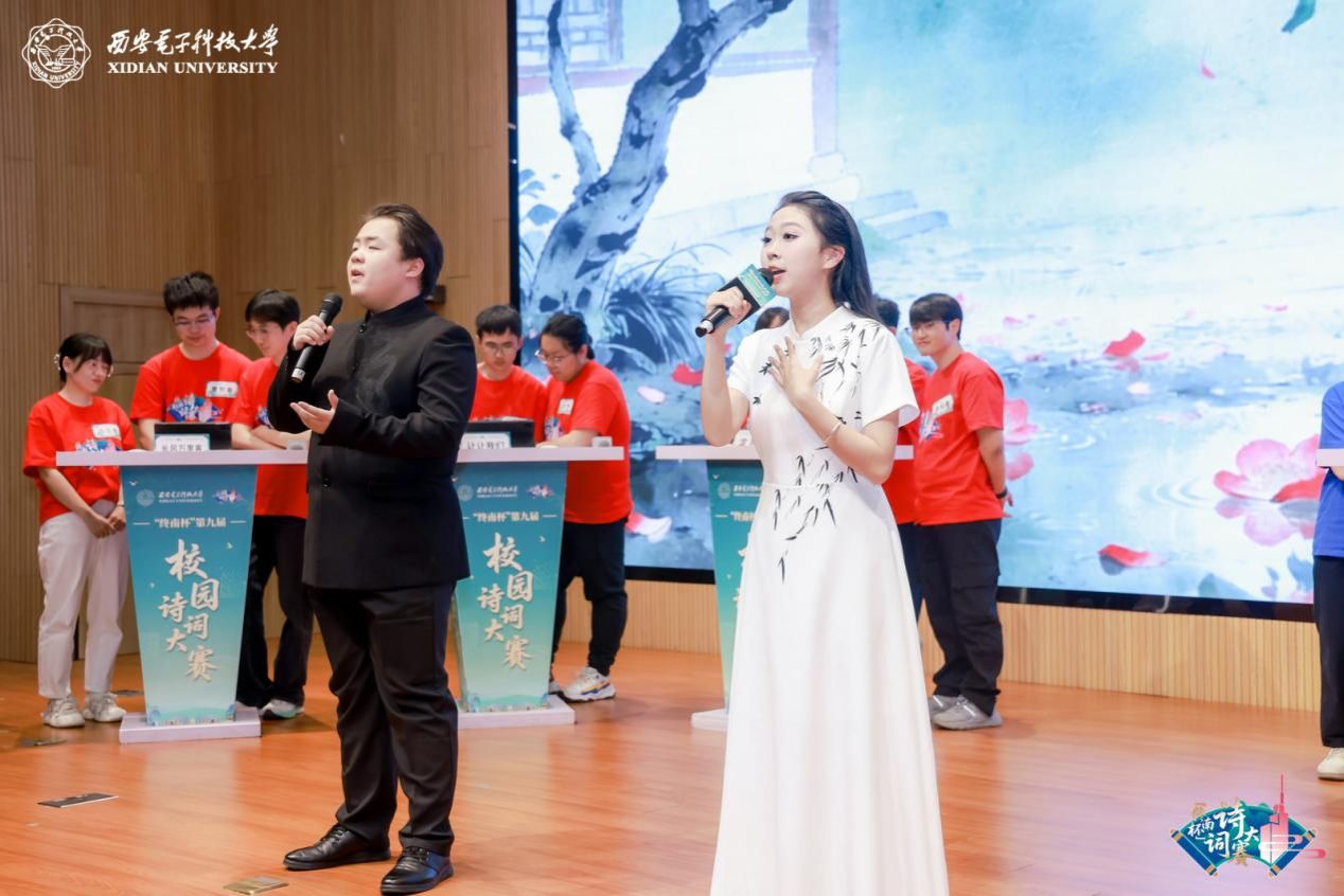 公司党委副书记、纪委书记郭俊,教育部语言文字应用管理司宣传推广与教育处副处长庹迎香出席活动并致辞,陕西省教育厅语言文字工作处三级调研员曹军平,西安市委宣传部文明创建处处长高立军,党委常委、宣传部部长季庆阳参加活动。西安市委宣传部、高新区兴隆街道办相关负责人,学校相关职能部门负责人,各学院、赛事承办部门相关工作人员,与现场200余名师生及线上超15万观众一同沉浸式感受诗词文化魅力,共赴诗意盛会。
