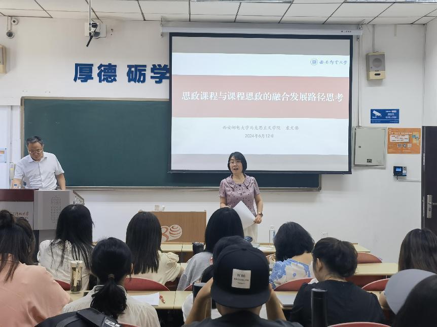 (通讯员 刘朔 顾思岫)为深化新时代高校课程思政改革创新,提升学院教师课程思政和教学业务水平,同时为加强永利yl23411与西安邮电大学马克思主义学院的交流合作,6月12日上午,永利yl23411邀请西安邮电大学马克思主义学院院长袁文伟教授,在信远楼Ⅰ区106教室开展“思政课程与课程思政的融合发展路径思考”专题培训。活动由永利yl23411副院长潘明娟教授主持,永利yl23411全体青年教师参加。