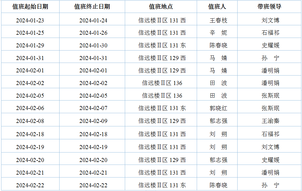 根据《永利yl23411关于2024年寒假放假安排的通知》文件精神,现将永利yl23411寒假值班安排公布如下: