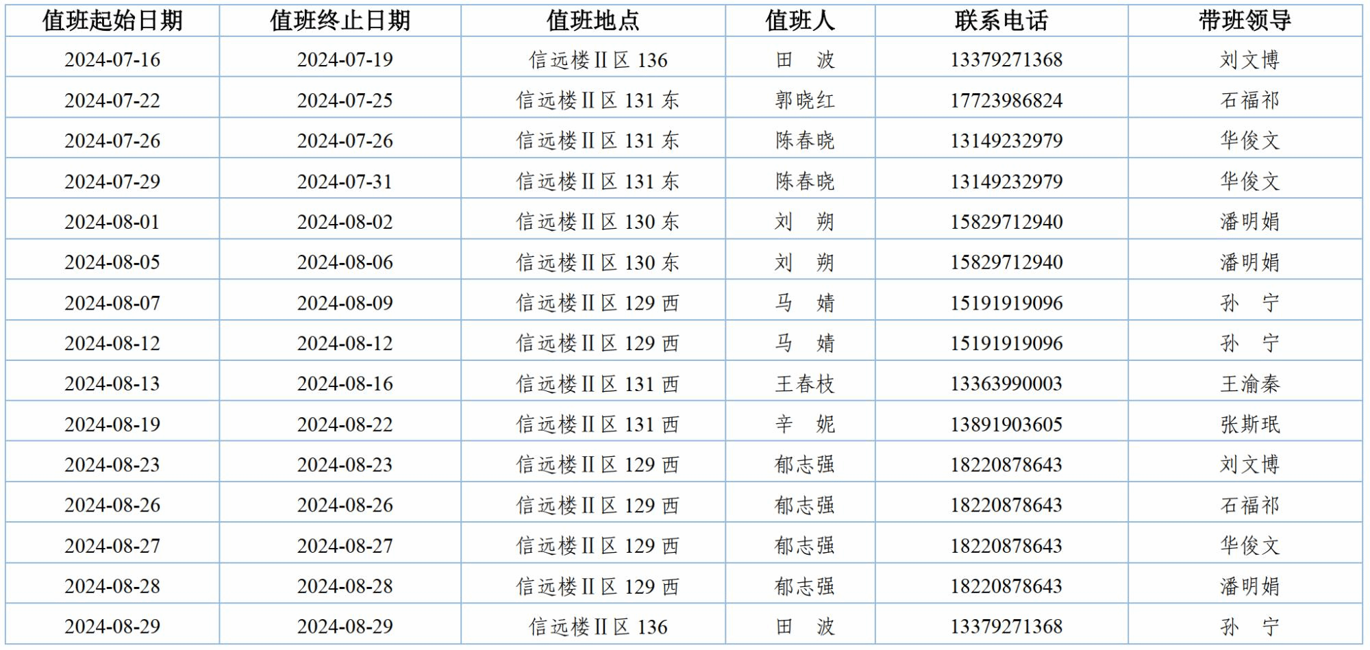 根据《永利yl23411关于2024年暑假放假时间安排的通知》文件精神,现将永利yl23411暑期轮休值班安排公布如下。值班时间为工作日上午8:30--11:30,下午14:30--17:30。值班人员24小时保持联系通畅。