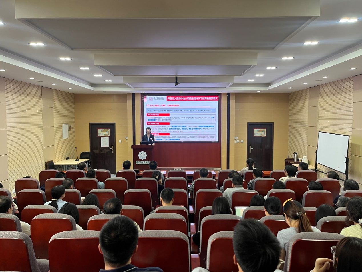 靳珠从开展深入贯彻中央八项规定精神学习教育的重要意义、违反中央八项规定精神的典型案例、加强作风建设筑牢廉洁自律防线等三个方面进行了深入解读。她紧扣新时代全面从严治党战略部署,系统梳理中央八项规定历史脉络、核心要义与时代价值,通过以案明德、以案释纪、以案析法、以案论责的立体化教育模式,推动警示教育入脑入心。她强调,高校教育工作者要将贯彻中央八项规定精神作为践行“两个维护”的具体行动,既要在大是大非前保持政治定力,也要在日常细微处坚守纪律底线,以“慎独慎微”的自觉和“刀刃向内”的勇气,持续筑牢拒腐防变的思想堤坝,用实际行动诠释“为党育人、为国育才”的责任担当。同时,她指出要进一步加强师德师风建设,将职业道德规范融入日常教育教学,以高尚师德育人树范,营造风清气正的育人环境。