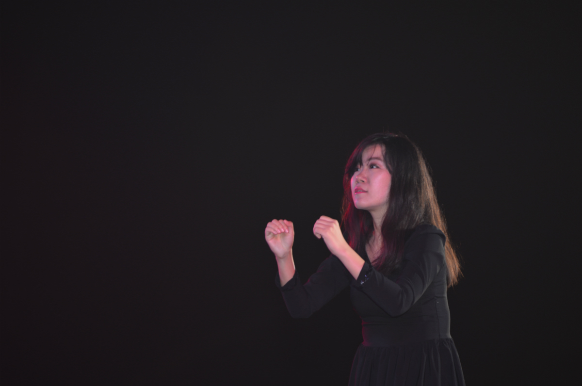 舞台上的精彩表现离不开一个多月的艰苦排练。合唱团成员来自四个年级,平时难以协调统一的时间,大多利用晚上和周末的时间排练,张帆老师多次在晚上的选修课之后还亲自到排练室指挥,力求展示出最好的效果。