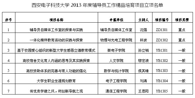 11月4日,永利yl23411公布了2013年度辅导员工作精品培育项目立项名单,永利yl23411辅导员穆宏浪主持的《高校宿舍文化育人内涵的思考及其实践探索》成功立项。