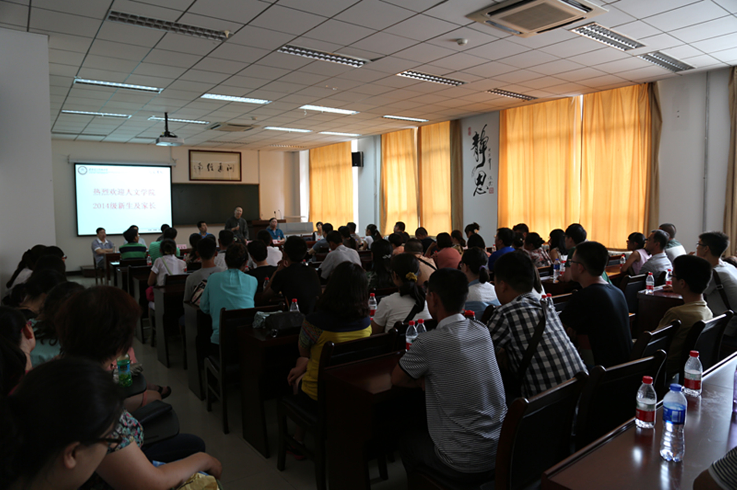 永利yl23411党委书记吴建新代表学院向来自全国各地的2014级新同学表示欢迎和祝贺。他从学院历史、系所设置、学科结构、专业特色、师资队伍、学生教育管理和就业前景等方面为新生及家长做了详细的介绍,重点向学生和家长解读了人文综合实验班的人才培养模式。人文综合实验班是在学校提升本科教育质量背景下,永利yl23411创新教育模式的一项举措。实验班按照“厚基础、宽口径、瞻前沿、重交叉”的培养原则,对哲学、汉语言文学和录音艺术三个专业的同学进行通识教育与专业教育,通识教育方面,将2014级学生纳入终南文化书院育人体系,统一培养,重德性教育、心智启发、思维锻炼和实践创新;专业培养方面,采取“主修+辅修制”,在修好本专业基础上,可依据个人兴趣和社会需求辅修技能性强的专业。同时,学院创新实行学习导师制度,已经为三个专业分别配备了1名优秀教师,专门负责学生的学业指导,提升学生的学术研究水平。