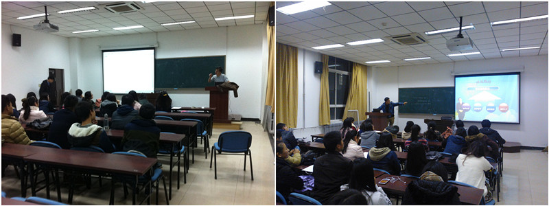 他还从大学期间如何利用校内外资源培养兴趣、完善人格、提高能力为同学们讲述了自己的故事。