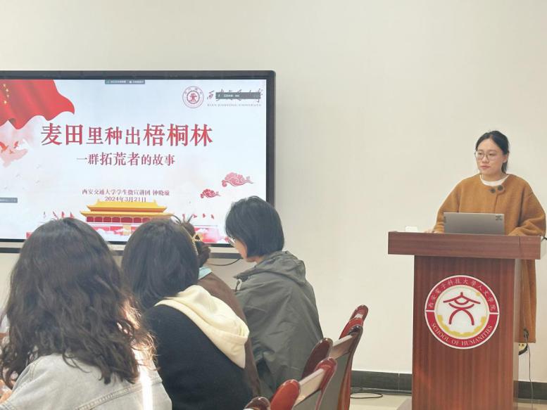 会议下半场,西安交通大学学生微宣讲团成员钟晓璇进行《麦田里种出梧桐林》西迁精神主题宣讲。无数可歌可泣的事迹铸就了西迁精神丰碑,一大批西迁人或孤身一人或举家迁徙,奉献青春力量努力建设西部,从无到有创造出了无数个第一。重返家乡、支教助学的白玛央金和深入一线、建设乡村的林舒进,是西迁精神的新传人,是新一代的拓荒者。西迁精神是投身祖国大西北建设时师生们义无反顾和无私奉献的爱国精神,更是师生们在扎根西北后勤于研究、热心科学事业的钻研精神。