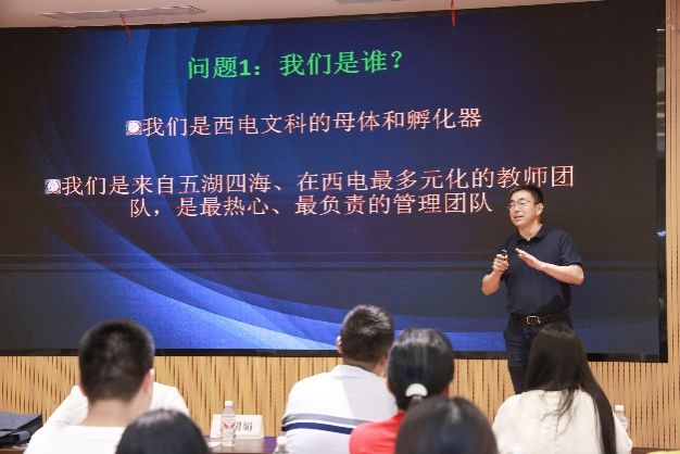 学院党委书记刘文博以“信任与信心”为关键词,感谢家长对学院的信任,介绍了学院发展历程,强调了学校电子信息科学优势,以及学院学科交叉培养和教学改革特色,希望家校共育为同学们提供高质量的教育服务;同时,他还耐心回答了家长提问,向新生代表赠书表达了美好祝愿。院长石福祁以“放手”和“放心”为关键词,回答家长们最关心的“我们是谁”“我们能为你们做什么”“我们对你们有什么建议”等三个问题,介绍了学院教育水平、学术活动和就业指导与服务,他希望同学们在大学期间树立正确的价值观,规划好自己的人生道路,全心投入大学生活并且精益求精。副院长潘明娟从学院教学特色、专业介绍和教学制度三方面详细介绍了学院教学工作,针对大类招生学生分流培养、转专业、推荐优秀本科毕业生免试攻读硕士学位研究生等新生密切关注的政策进行了详细解读。党委副书记史耀媛以“长大”和“成长”为关键词,从特色校园文化、社会实践、对外交流等角度介绍学院学生工作取得的成绩和学生教育管理的特色做法。