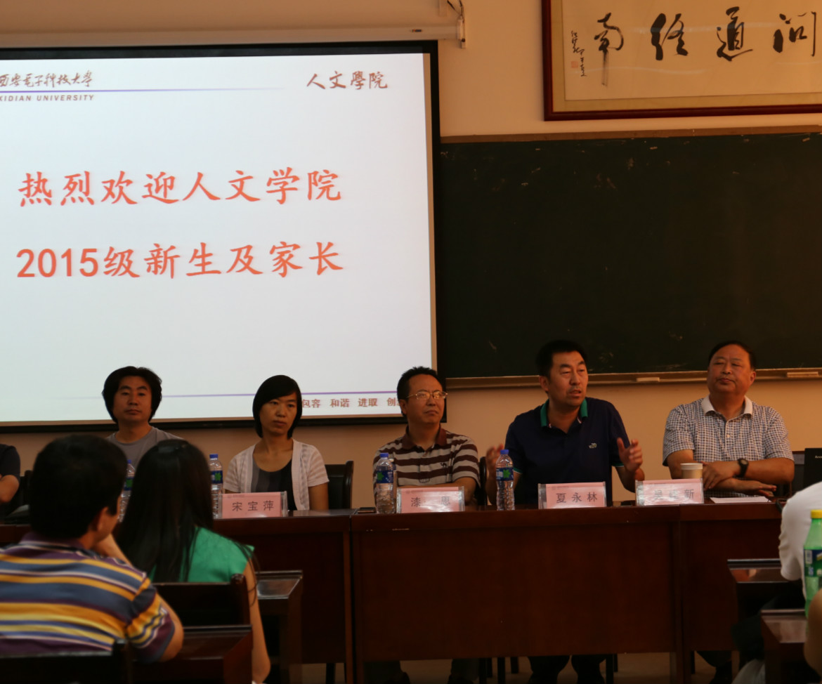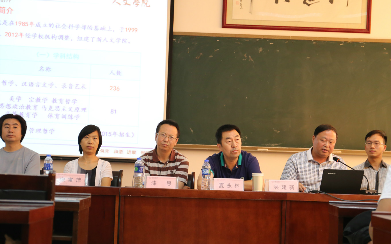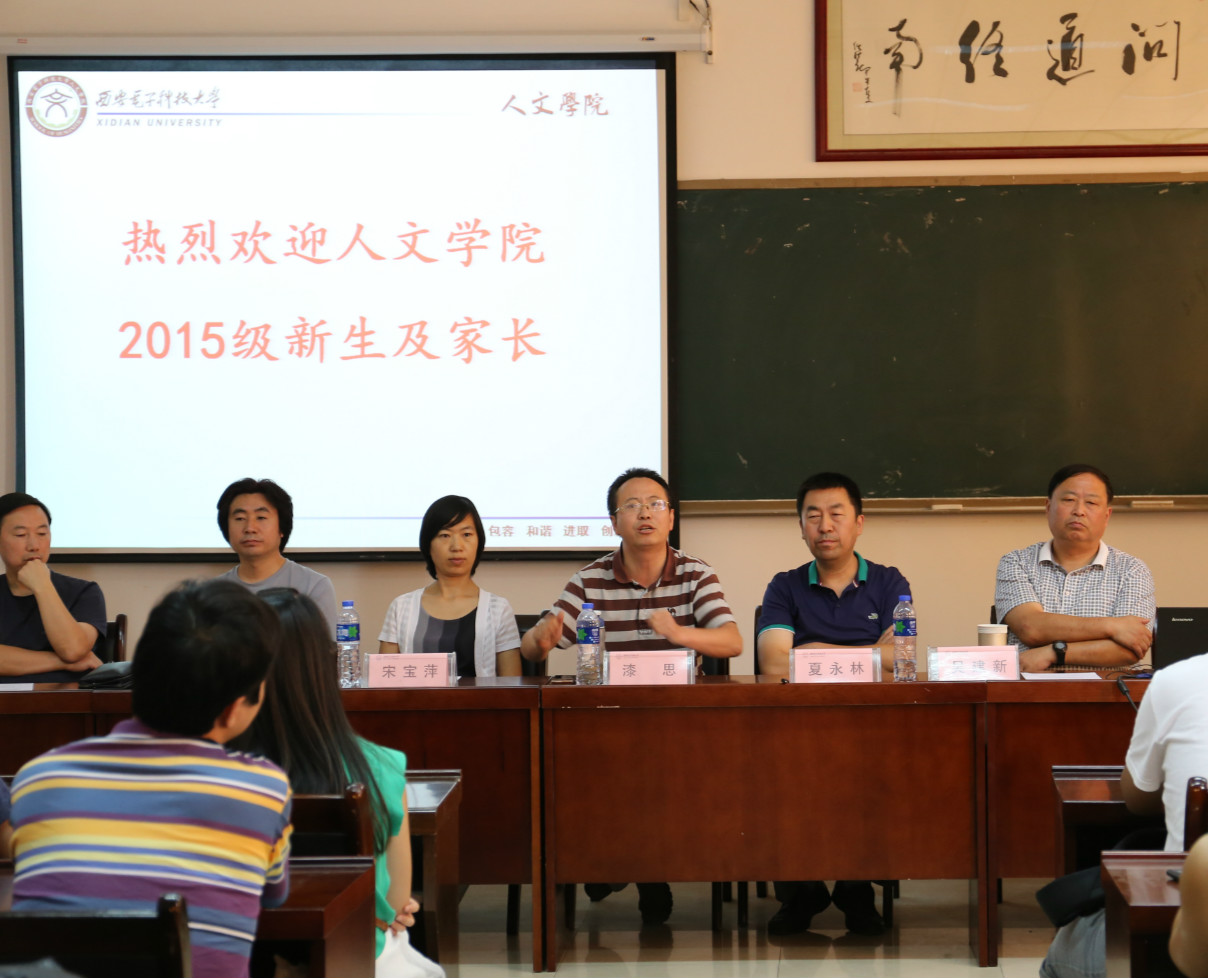 院党委书记吴建新教授代表学院向来自全国各地的2015级新同学表示欢迎和祝贺。他从学院历史、系所设置、学科结构、专业特色、师资队伍和学生教育管理等方面为新生及家长做了详细的介绍,重点向学生和家长解读了人文综合实验班的人才培养模式。一方面,按照“厚基础、宽口径、瞻前沿、重交叉”的培养原则,将哲学、汉语言文学和录音艺术三个专业的同学纳入终南文化书院育人体系,统一培养,重德性教育、心智启发、思维锻炼和实践创新;一方面,采取“主修+辅修制”,学生不仅要完成本专业教学计划规定的课程,还可以依据个人兴趣和社会需求辅修技术性较强的辅修课程。同时,学院创新实行学习导师制度,已经为三个专业分别配备了1名优秀教师,专门负责学生的学业指导,鼓励同学们参与导师的研究课题,提升学生的学术研究水平。